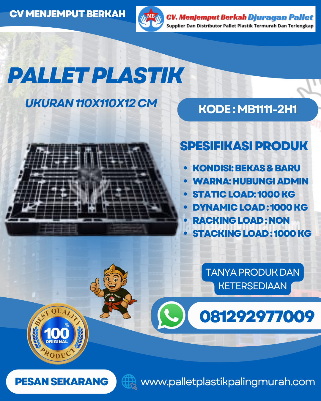 Pallet Plastik Baru & Bekas 110x110x12 [MB1111-2B] merupakan solusi andal untuk kebutuhan logistik, pergudangan, dan distribusi barang dengan kapasitas ringan hingga menengah. Produk ini dipasarkan oleh CV Menjemput Berkah, perusahaan terpercaya yang bergerak di bidang penjualan pallet plastik baru dan bekas dengan komitmen menghadirkan produk berkualitas, pelayanan profesional, serta harga yang terjangkau bagi berbagai sektor industri di Indonesia.