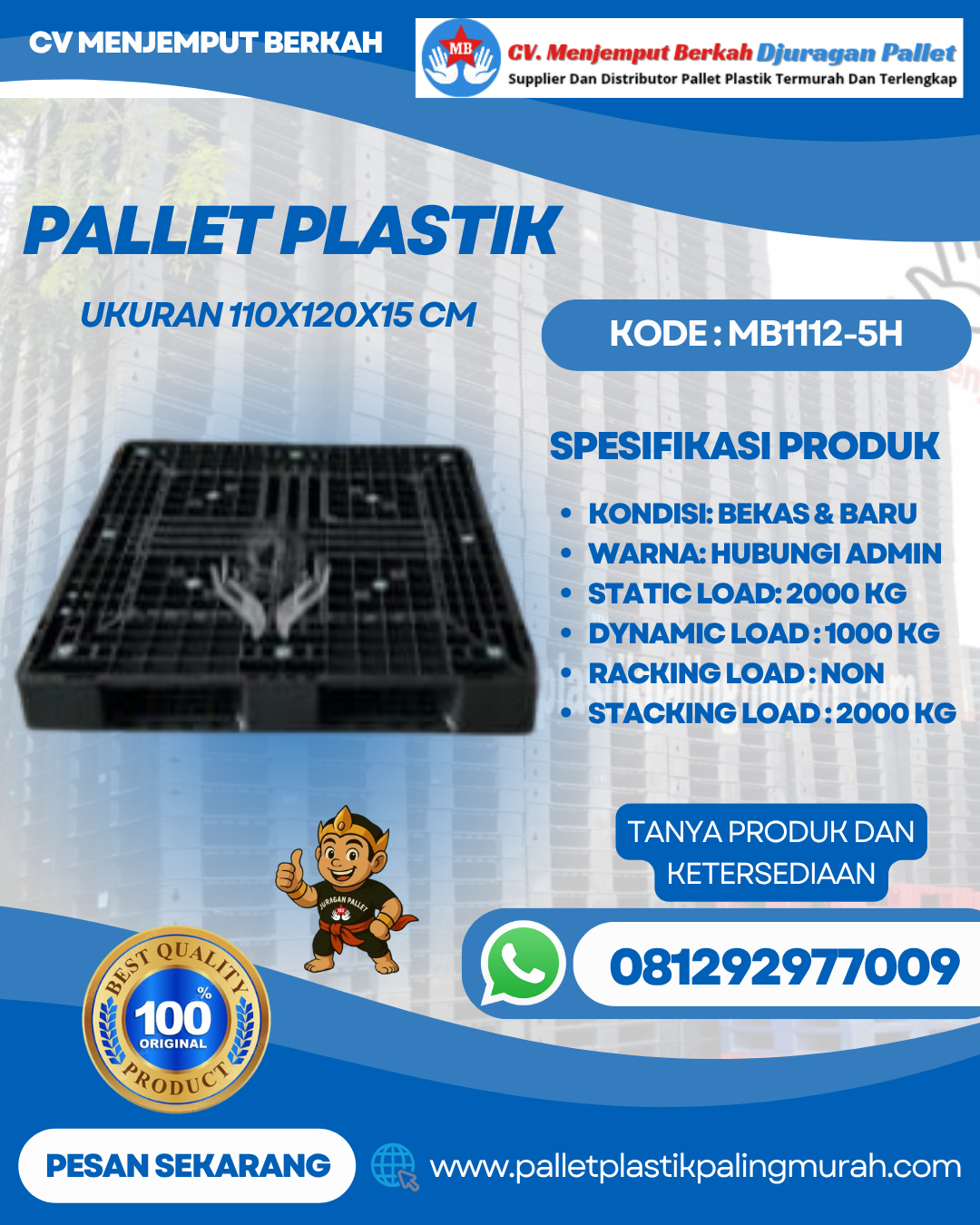 Dalam kegiatan logistik, pergudangan, dan distribusi barang, penggunaan pallet yang berkualitas merupakan faktor penting untuk menjaga keamanan produk sekaligus meningkatkan efisiensi operasional. CV Menjemput Berkah hadir sebagai perusahaan yang bergerak di bidang penjualan pallet plastik baru dan bekas dengan komitmen menyediakan produk berkualitas, pelayanan profesional, serta harga yang terjangkau. Salah satu produk unggulan yang banyak digunakan oleh berbagai sektor industri adalah Pallet Plastik Baru & Bekas 110x120x15 [MB1112-5H].